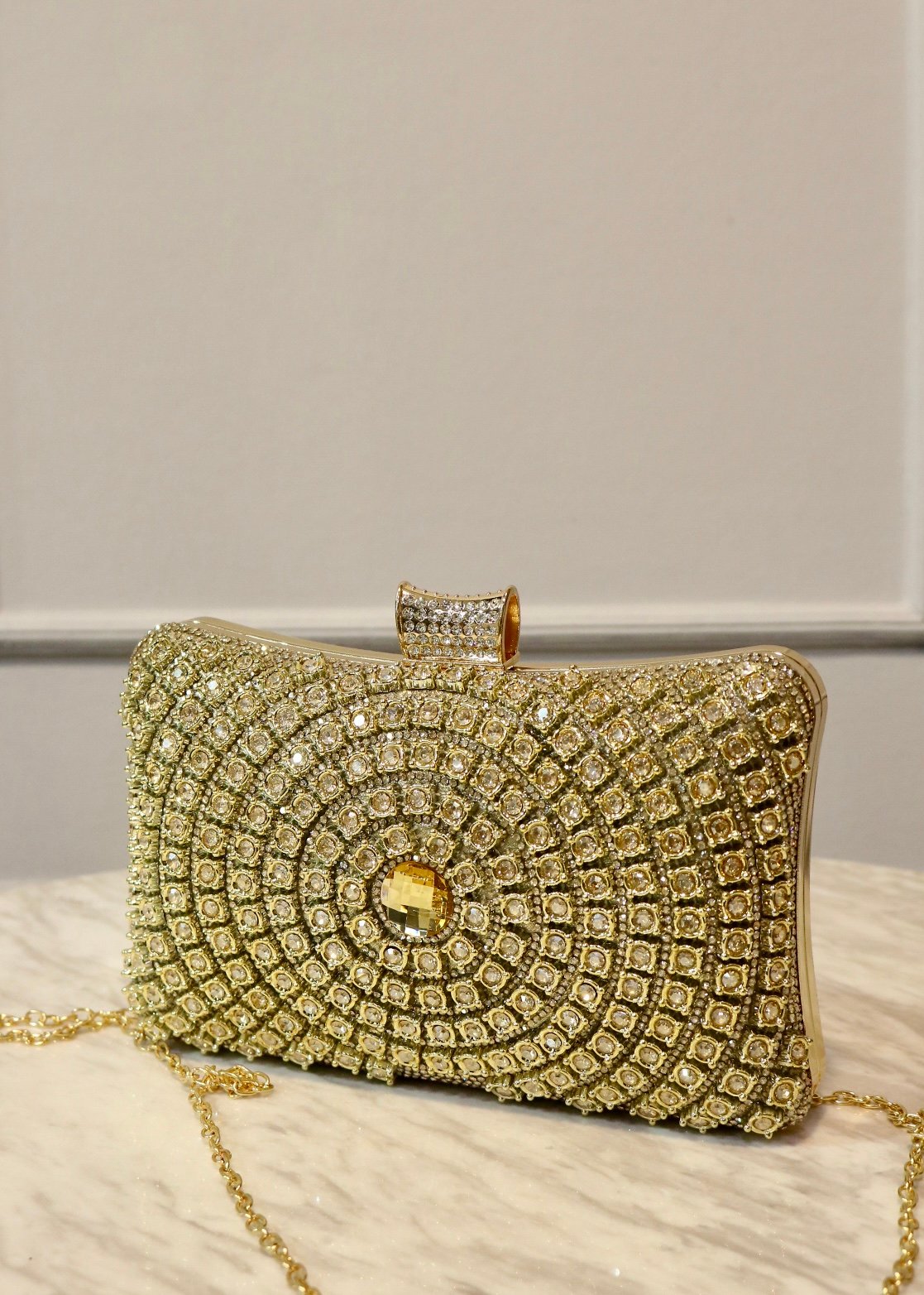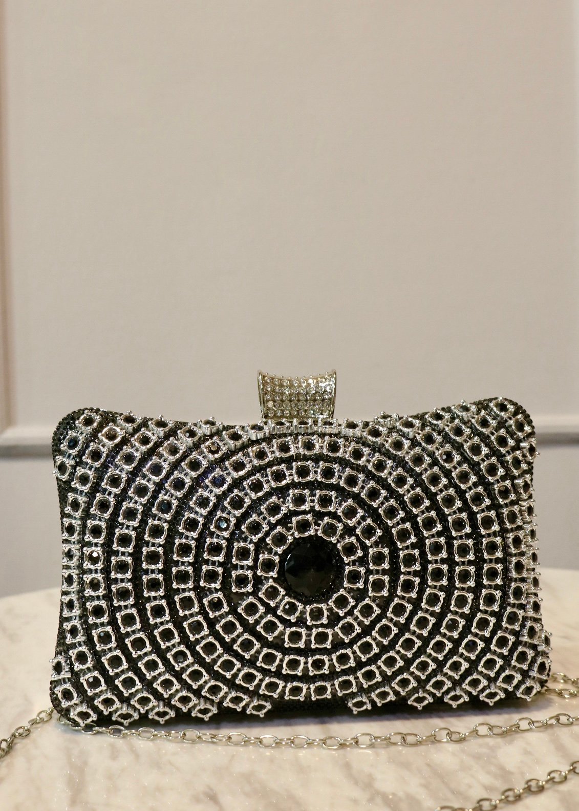 'descripcion' => '<p>Destaca con estilo y atrapa todas las miradas usando este hermoso diseño.<br />Elaborado con cuero PU recamado en pedrería ✨</p><p>Incluye cadena delgada</p><p>Medidas aproximadas</p><p>ALTO - 13 CM</p><p>ANCHO - 20 CM</p><p>FUELLE - 6 CM</p>',